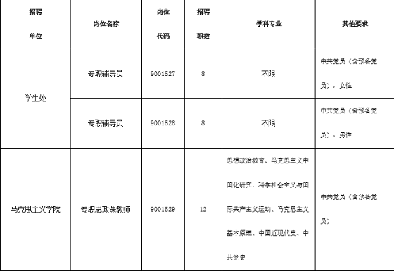 本次招聘專職輔導(dǎo)員16人,專職思政課教師12人,具體計劃及要求見下表(正式編制)。