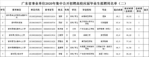 附件:廣東省事業單位2020年集中公開招聘高校應屆畢業生擬聘用名單(二)