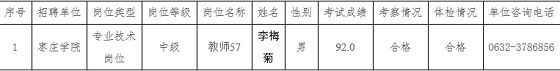 根據《關于2020年省屬事業單位公開招聘工作人員有關問題的通知》(魯人社發〔2019〕40號)等相關規定,按照崗位招聘計劃,棗莊學院組織完成了公開招聘考試、考察、體檢等工作,現對棗莊學院擬聘用人員進行公示。公示期為7個工作日,自2021年1月7日至2020年1月15日(不含節假日)。公示期間,如對公示人選有異議,請及時向省事業單位公開招聘主管機關和棗莊學院反映。