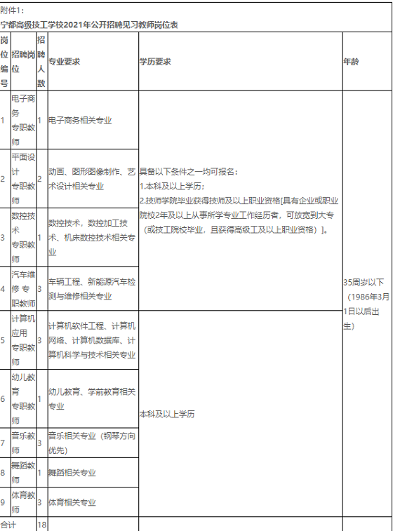 附件1:寧都高級技工學校2021年公開招聘見習教師崗位表