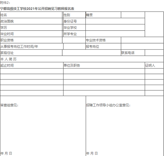附件2:寧都高級技工學校2021年公開招聘見習教師報名表