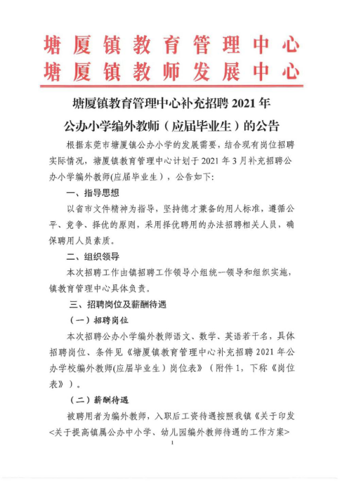 附件1 塘廈鎮教育管理中心補充招聘2021年公辦學校編外教師(應屆畢業生)崗位表.xls |