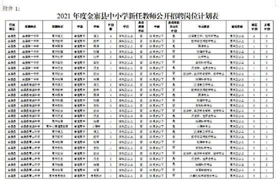 1.2021年度金寨縣中小學新任教師公開招聘崗位計劃表