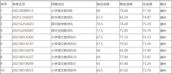 常熟市2021年教育系統公開招聘中小學教師體檢資格遞補名單