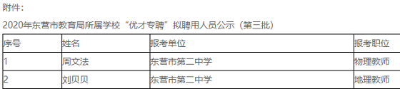 附件:2020年東營市教育局所屬學校“優才專聘”擬聘用人員公示(第三批)