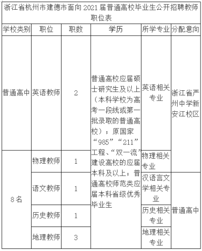 1.《浙江省杭州市建德市面向2021屆普通高校畢業生公開招聘教師報名表》(見附件);