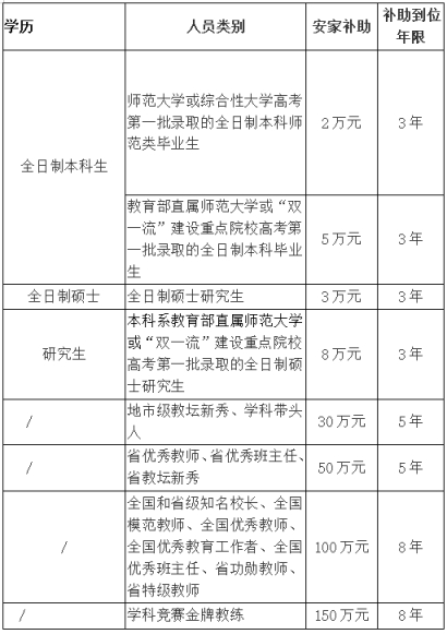 (一)給予專項招聘引進的教育人才安家補助