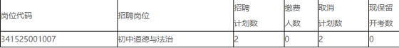 根據(jù)《2021年度霍山縣中小學新任教師公開招聘公告》規(guī)定:資格審查并網(wǎng)上繳費結(jié)束后,報考同一崗位的應(yīng)聘人數(shù)與招聘崗位計劃數(shù)之比不低于2:1。對不足規(guī)定開考比例的,取消或相應(yīng)核減該崗位計劃數(shù)。經(jīng)審定,現(xiàn)將報名繳費后達不到規(guī)定開考比例的初中道德與法治崗位招聘計劃核減情況予以公布。