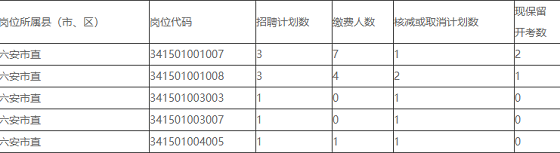 2021年度六安市市直中小學新任教師公開招聘考試報名經前期網上資格初審和繳費確認,現有部分崗位達不到開考比例被取消或核減。所報崗位因報名人數不足被取消的,原報考該崗位的人員可在3月12日8:00-12:00進行一次改報,逾期不再受理。未按時改報或改報后資格審核不通過的人員不能參加考試,其已繳費用在考試后自動退回。