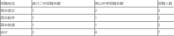 為滿足學校教育教學工作需要,經縣委編委研究同意,招聘7名高等院校應、歷屆碩士研究生及以上學歷者到我縣遂川二中、燕山中學任教,F就招聘有關事項公告如下: