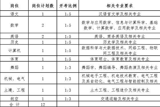 2、學歷要求:具有本科及以上學歷,報考語文、數學、英語、歷史、計算機、體育和舞蹈崗位的要求取得相應學位。