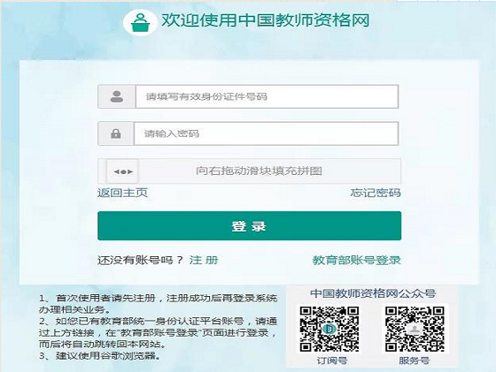進入教師資格認定網申登錄界面(如下圖)進行注冊。