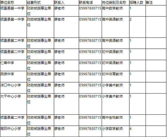 1補充專項招聘仍按《2021年順昌縣中小學幼兒園緊缺急需學科教師專項招聘公告》執行。