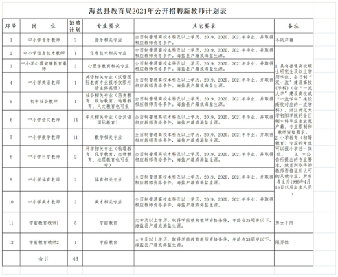 為進一步完善“公開、平等、競爭、擇優”的進人、用人機制,吸引優秀人才從教,努力提高教師的整體素質,根據《海鹽縣事業單位公開招聘人員暫行辦法》的有關規定,結合本系統新教師補充工作的實際情況,并經縣有關部門核準,現將2021年公開招聘新教師相關事項公告如下: