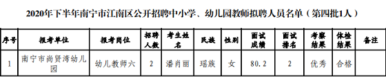 附件:2020年下半年南寧市江南區公開招聘中小學、幼兒園教師擬聘人員名單(第四批1人)