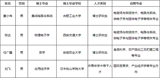 經學校2021年第8次黨委會研究同意,我校擬錄、聘用童小偉等4名同志來校從事教學科研工作。現將擬聘人員基本情況予以公示(2021年人員招聘第四批)。公示期自2021年3月30日至4月5日。如有異議,請來函來電。