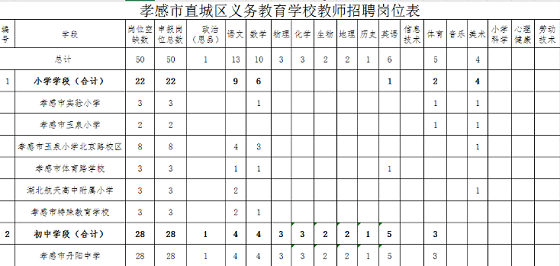附件:《孝感市直城區義務教育學校教師招聘崗位表》