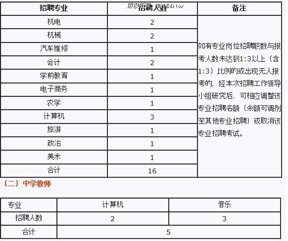 7.報考職業學校教師除汽車維修、計算機專業外其它專業需具有中專(或同等水平)教師資格證(或已取得教育學、心理學合格成績且通過普通話二級乙等以上測試,具備申報教師資格證條件)。報考中學教師除計算機專業外需具有中學教師資格證(或已取得教育學、心理學合格成績且通過普通話二級乙等以上測試,具備申報教師資格證條件)。