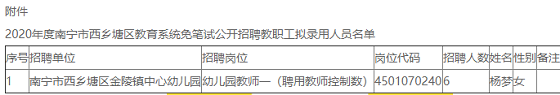 附件:2020年度南寧市西鄉塘區教育系統免筆試公開招聘教職工擬錄用人員名單
