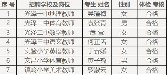 根據《光澤縣教育局光澤縣人力資源和社會保障局關于2021年光澤縣緊缺急需學科教師專項招聘公告》文件精神,經面試、體檢、考核等程序,現將符合招聘條件擬正式聘用人員公示。