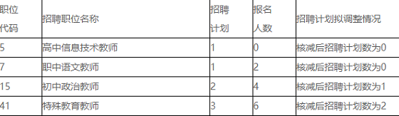 根據《東臺市教育局直屬學校2021年公開招聘教師公告》精神,因部分職位報名資格審核合格人數未達開考比例,決定調整部分職位招聘計劃(詳見附表)。