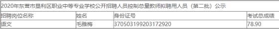 附件:2020年東營市墾利區(qū)職業(yè)中等專業(yè)學校公開招聘人員控制總量教師擬聘用人員(第二批)公示