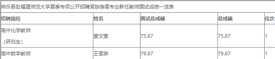 附件:將樂縣赴福建師范大學夏季專項公開招聘緊缺急需專業(yè)新任教師面試成績一覽表