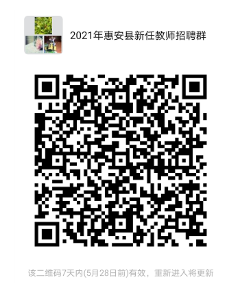 8.請各位考生掃描加入2021年惠安縣編內教師招聘群,群內昵稱以“招聘崗位+姓名(名次)”命名,如“小學語文+張三(6)”,并及時關注群內通知。本通知未盡事宜由惠安縣教育局負責解釋。咨詢電話:0595-87394096、87387040。