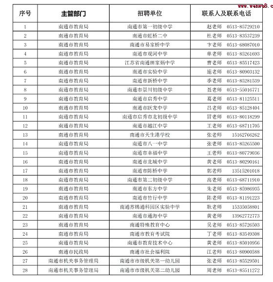 咨詢電話:0513-85098840南通市教育局人事處(教師工作處);