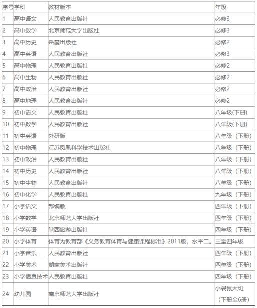 應(yīng)聘高中語文、數(shù)學、英語崗位者采用高中一年級下學期必修三現(xiàn)行教材,應(yīng)聘高中歷史、政治、物理、生物、地理崗位者采用高中一年級下學期必修二現(xiàn)行教材;應(yīng)聘小學語文、數(shù)學、英語、音樂、美術(shù)、信息技術(shù)崗位者采用小學四年級下學期現(xiàn)行教材;應(yīng)聘小學體育崗位者采用體育為教育部《義務(wù)教育體育與健康課程標準》2011版,水平二(三至四年級);應(yīng)聘初中語文、數(shù)學、英語、物理、政治、歷史、生物崗位者采用八年級下學期現(xiàn)行教材;應(yīng)聘初中化學崗位者采用九年級下學期現(xiàn)行教材;應(yīng)聘幼兒園崗位者采用大班小袋鼠下冊全冊現(xiàn)行教材。所需教材由縣教育局為考生準備,考生不得攜帶教材、參考資料及其他教學輔助工具。教材版本見附件。