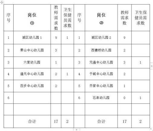 一、計劃數:教師34人(分崗位①、崗位②),衛生保健員4人。
