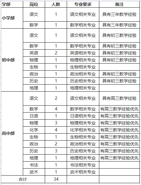 備注:疫情期間由學校對應聘者所在地區進行分類,符合應聘條件的將通知參加面試考核,位于中高風險地區的應聘者另行商議考核形式。