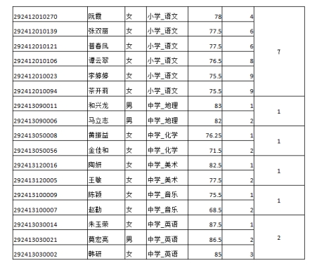 (三)聘用:體檢合格的考生分學科按教體局所設崗位,由考生按合成成績從高到低依次自主選崗。
