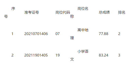 根據《通州灣示范區教育系統2021年公開招聘教師公告》有關規定,現對體檢不合格或主動放棄的部分職位,從考試總成績合格人員中,從高分到低分依次確定體檢遞補人員。現公告如下: