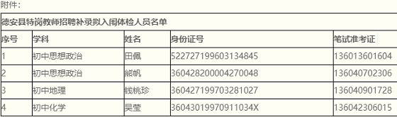 附件:德安縣特崗教師招聘補錄擬入闈體檢人員名單