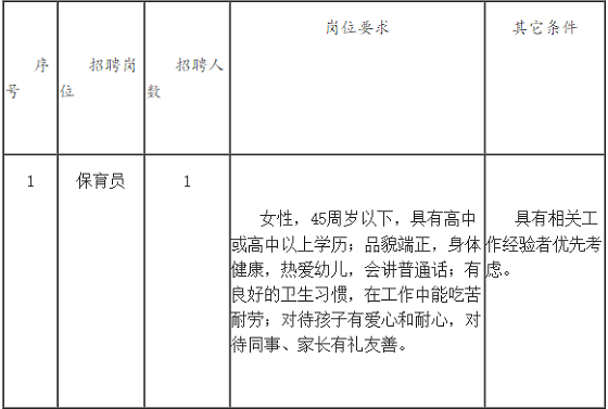 無錫市實驗幼兒園是無錫市教育局下屬的全額撥款事業單位,現向全社會公開招聘幼兒園編外保育員1名。具體崗位及崗位要求如下:
