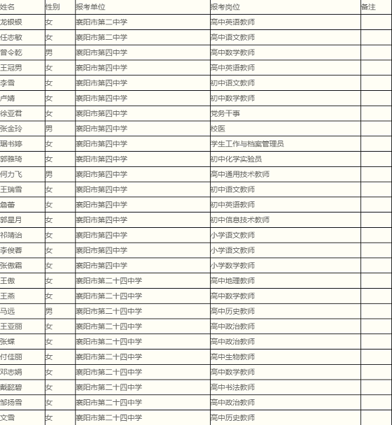 附:《襄陽市第二中學等三所學校(單位)公開招聘擬聘用人員名單》