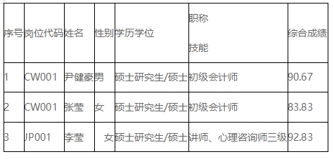 根據《東莞市機關事業單位招聘聘用人員管理辦法》的有關規定,經過報名、資格審查、心理測試、面試、體檢、考察等工作程序,擬聘用尹健豪等3名同志到東莞理工學院工作,現予以公示,公示名單見下表。