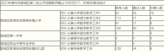 2021年山東德州陵城區第二批公開招聘教師截止10月8日17:00報名情況統計