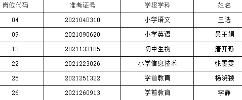 2021年秋季如東縣教育系統公開招聘教師遞補進入體檢的人員名單