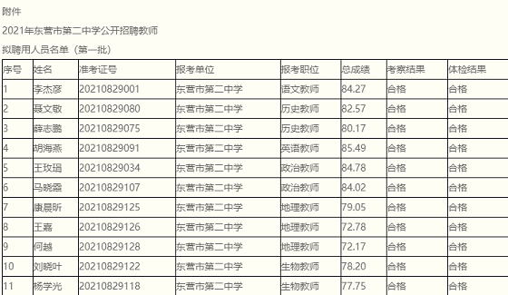 附件:2021年東營市第二中學公開招聘教師擬聘用人員名單(第一批)