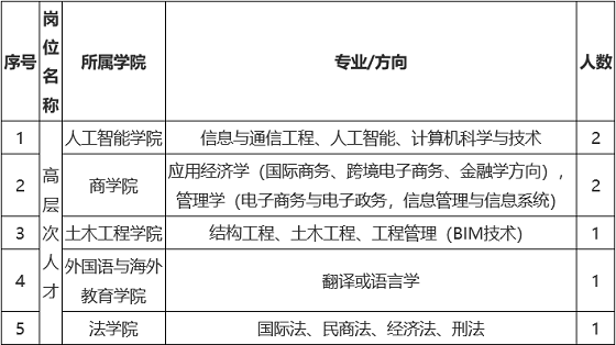 備注:以上引進高層次人才的學歷學位要求均為博士研究生,年齡要求在55周歲以下,特別優秀的年齡放寬至不超過60周歲。