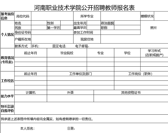 附件:1.河南職業技術學院2021年公開招聘教師崗位信息表