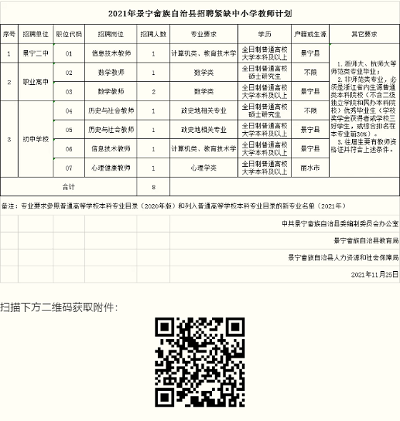 附件1:2021年景寧畬族自治縣招聘緊缺中小學教師計劃