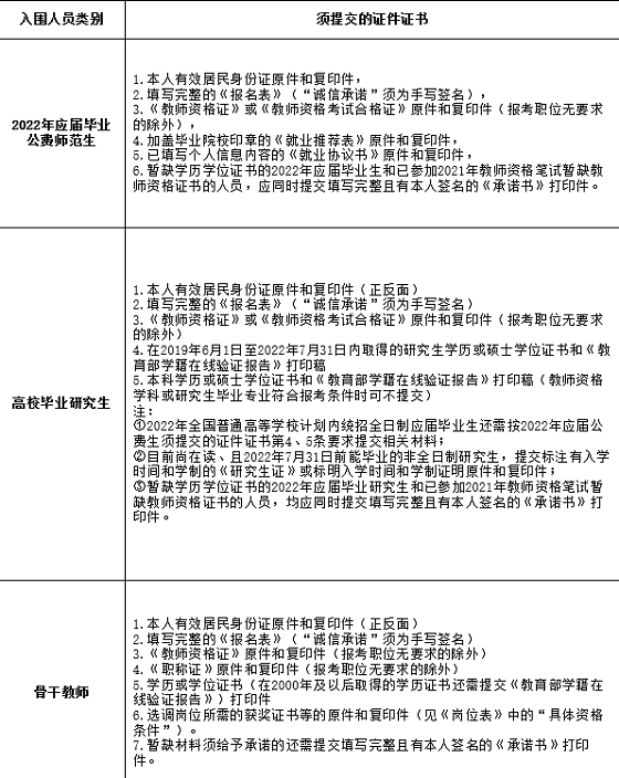 1、參加考核的人員為筆試后入圍考核的人員、選調(diào)骨干教師崗位和僅限公費(fèi)師范生報(bào)考崗位的資格初審合格人員。