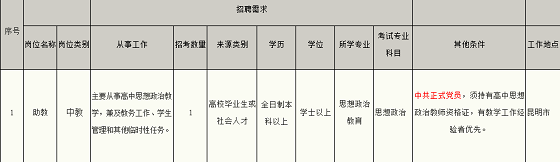 一、招聘崗位及要求(詳見中國人民解放軍陸軍邊海防學院(昆明校區)藏族中學崗位需求表)