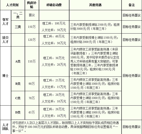 宿州學院2021年引進高層次人才及團隊待遇一覽表