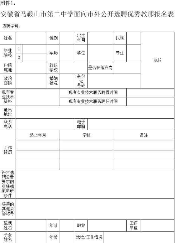 安徽省馬鞍山市第二中學面向市外公開選聘