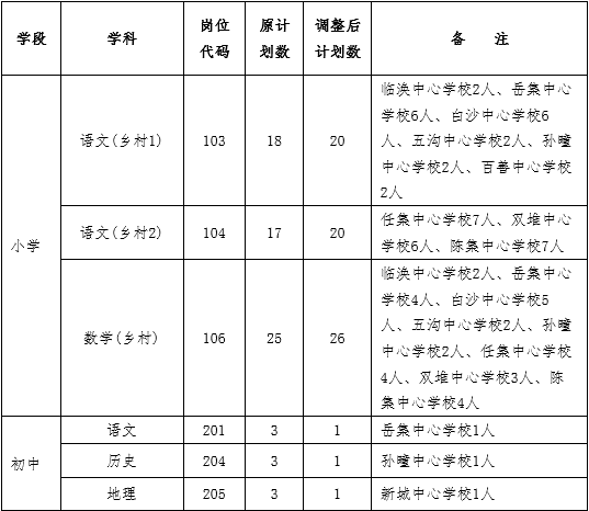 2021年濉溪縣公開招聘非在編中小學教學人員招考報名工作已經結束,根據《濉溪縣2021年公開招聘非在編中小學教學人員公告》要求,初中語文、初中歷史、初中地理3個崗位各招考3名,通過資格審查的人數與招聘崗位數量的比例三學科均達不到公告要求,按規定調整為初中語文1名、初中歷史1名、初中地理1名。調減的6個崗位職數分別追加給103崗位2名,104崗位3名,106崗位1名。