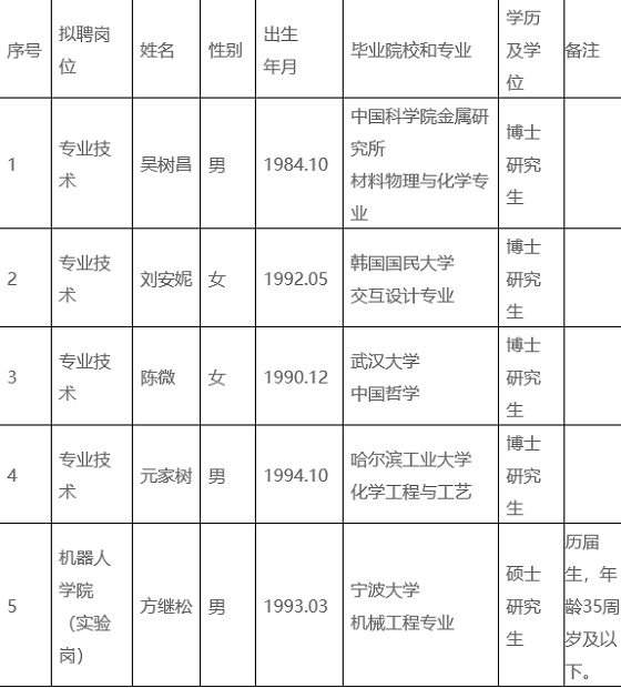 按照《寧波市事業單位公開招聘工作人員實施辦法》和2021年寧波工程學院公開招聘高層次人才(教師)公告(2021年2月22日)、寧波工程學院公開招聘事業編制人員公告(2021年10月8日)規定的程序,寧波工程學院公開招聘工作通過公開報名、統一考試,已進入擇優聘用程序。根據面試、考核、體檢結果,在合格人員中,經寧波工程學院領導班子集體研究擇優確定下列5位擬聘用人員,現公示名單如下: